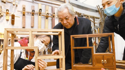 为展示学校推动产教融合、校企合作等方面的发展成果,近日,天津职业大学职业教育特色活动“智能制造引领未来”等来自10个学院的17个展示项目为师生带来了一场内容丰富、各具特色的职教盛宴。图为传统木艺制作展示。作者/来源:张立