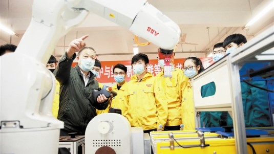 为展示学校推动产教融合、校企合作等方面的发展成果,近日,天津职业大学职业教育特色活动“智能制造引领未来”等来自10个学院的17个展示项目为师生带来了一场内容丰富、各具特色的职教盛宴。图为工业机器人智能制造展示。 作者/来源:张立