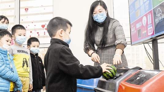 The Jiachunyuan community in Tianjin’s Dongli district holds a training class to encourage residents to throw themselves into the “new fashion” of waste sorting before a mandatory implementation in the city next month. Creator/Source: Liu Naiwen and Zhai Xinbin