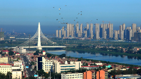 Like a belt decorated with pearls, the Ji Canal flows around the urban area. While overlooking the bridge on the Guangming Road, you will see birds circling over it and a forest of high rises. Creator/Source: Ninghe District Cyberspace Administration