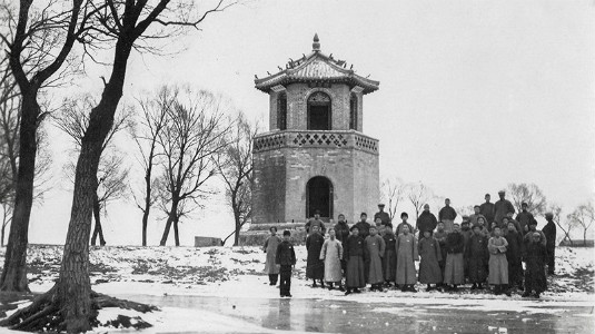 A group photo taken in front of the Kuixing Pavilion in Ninghe town. Creator/Source: Ninghe District Cyberspace Administration