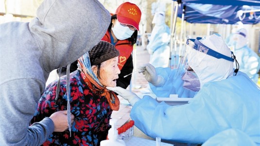 Tianjin’s Heping district sent 419 medical workers to assist Binhai New Area in delivering nucleic acid testing for a total of 252,000 people. As of 18:00 on Nov 21, Binhai New Area had completed an overall COVID-19 virus screening, with 1.03 million people receiving tests at 2,282 sampling sites, according to data from municipal prevention and control headquarters. Creator/Source: Lan Fei
