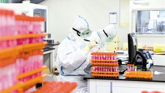 Medical personnel work in an efficient and orderly manner with highly automated equipment at the Novo Medical Laboratory in Tianjin’s Wuqing district. As one of the city’s designated testing institutions, the laboratory has taken on more than a quarter of the workload of all employees in Binhai New Area. Creator/Source: Zhou Wei