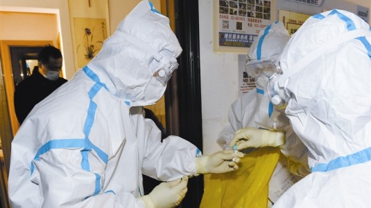 Medical staff in Tianjin’s Binhai New Area visit local residents’ homes to conduct nucleic acid tests for those who are mobility-impaired. Creator/Source: Zhou Wei