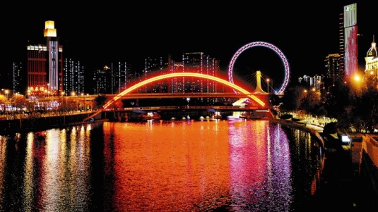 After two and a half years of construction, the Guangming Bridge connecting Qiaobei New Area and the old town has been completed across the Ji Canal. It adds a splendid vista to the Ninghe district, like a white crane spreading its wings. Creator/Source: Ninghe District Cyberspace Administration