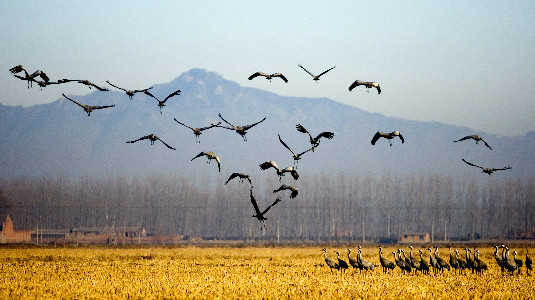 Cuiping lake, with excellent water quality, has more than 120 species of birds. Every April, more than 20,000 water birds can be seen here, including nationally protected species like whooper swan, white stork and white spoonbill. Creator/Source: Jizhou District Cyberspace Administration