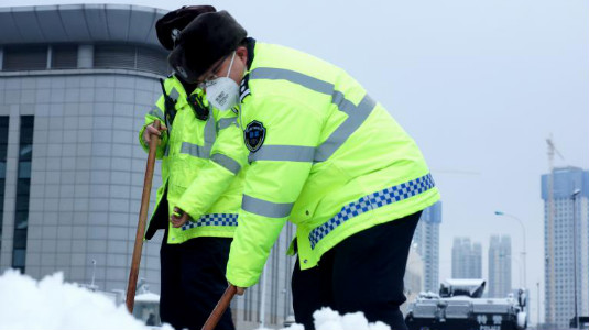 All the officers in the Jinghai district traffic police detachment strive to build a strong line of defense against the virus. Among them is an old policeman, no longer as strong as he once was but still doing his duty on the front line. Creator/Source: Jinghai District Cyberspace Administration