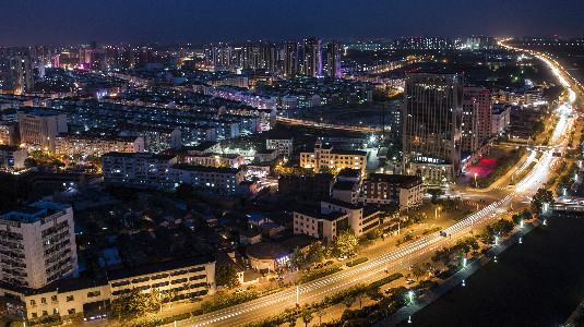 The lights decorate the winding highway by the Yueya River, which looks like a golden belt stretching straight into the depth of the night. Creator/Source: Jinnan District Cyberspace Administration