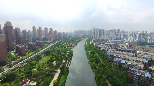 The old Haihe River gently embraces and nourishes the Xianshuigu town in the north. Creator/Source: Jinnan District Cyberspace Administration
