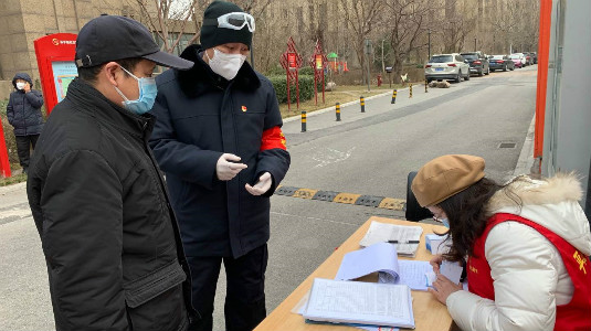Since the outbreak, workers at the Baocui Huadu community of Ruijing Street have been fighting for every resident on the front line of community-based epidemic prevention and control. Creator/Source: Beichen District Cyberspace Administration