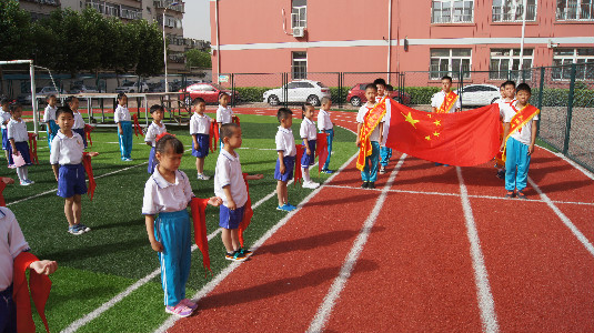 此时孩子们齐聚在新足球场上,在老师的指导下、领操员的示范下,学习新的广播体操动作。 作者/来源:河东区委网信办