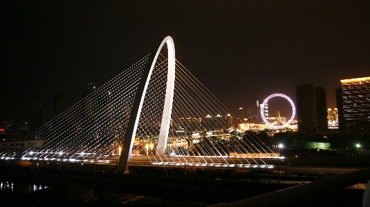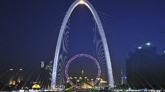 The Tianjin Eye at night looks more dazzling and eye-catching than during the daytime. When being looked through the arched girder of the bridge, it is even more charming. Creator/Source: Hebei District Cyberspace Administration