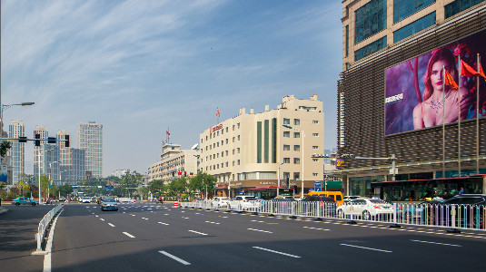 Street scene in front of the Hebei district government buildings -- orderly and prosperous wide streets. Creator/Source: Hebei District Cyberspace Administration