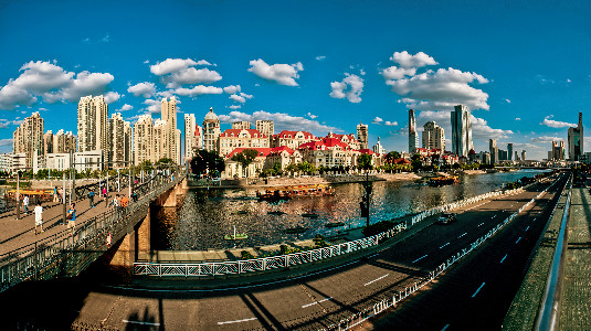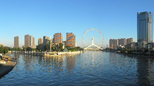 The water of the Haihe river is deep and blue; along with its elegant shore scenery, it reflects a noble beauty of Tianjin. Creator/Source: Hebei District Cyberspace Administration