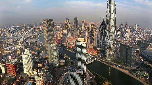 In 2005, Tianjin started to develop the Sancha estuary area. The TEDA city, one of the six cultural and commercial nodes of the Haihe River, was planned to be built here. Creator/Source: Hongqiao District Cyberspace Administration