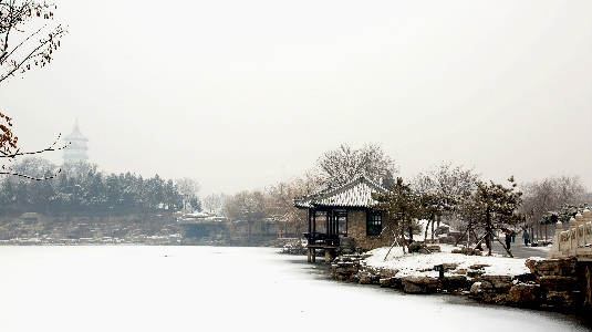 宁园迎来了第一场初雪,地面一片银白,冬天的气息骤近,雪下得天地间朦朦胧胧,远处的致远塔也模糊的样子。 作者/来源:河北区委网信办