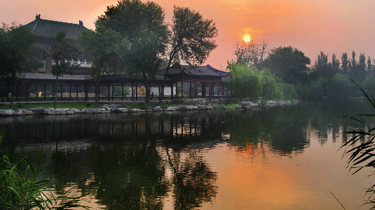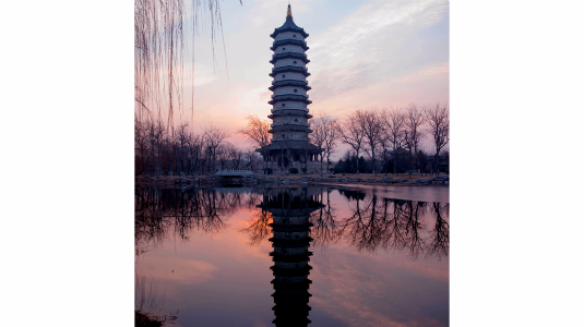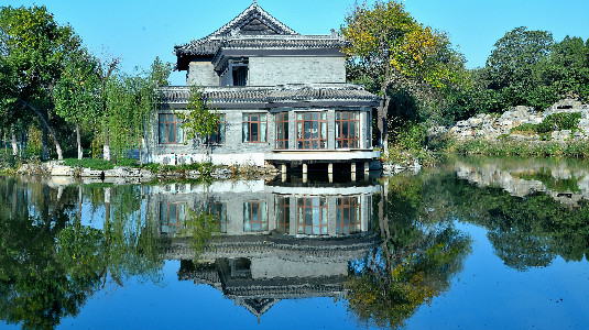 The inverted reflection of the pavilion in water seems to be even more charming than the real one. Creator/Source: Hebei District Cyberspace Administration