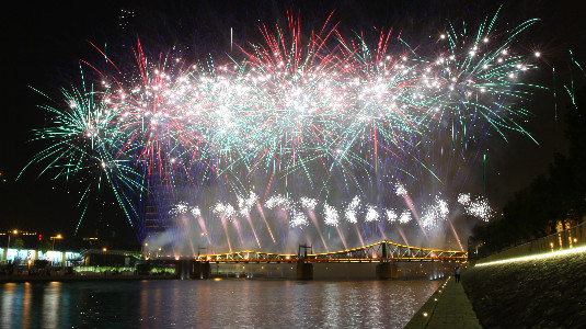 不夜城的晚上总是精彩纷呈,光是地平线上的灯光辉煌并不能满足大都市的野心,一声声烟花炸裂的脆响,将天津夜晚的花火升上了天际线,耀眼地绽放在金汤桥上空。 作者/来源:河北区委网信办