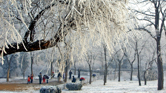 The Ningyuna Garden welcomes its first snow of the year. Creator/Source: Hebei District Cyberspace Administration