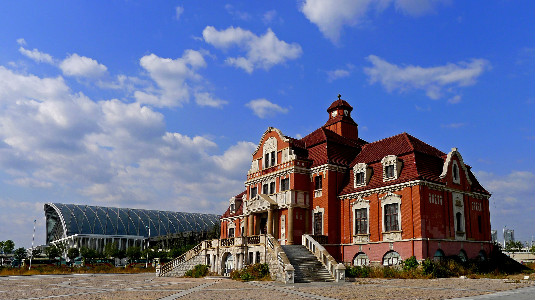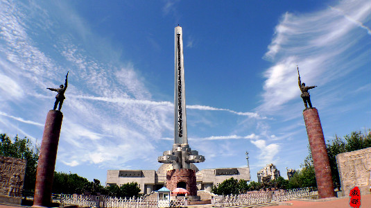 The front part of the Beiping-Tianjin Campaign Memorial Hall is a three-floor building decorated with warm-grey granite. The back part is a silver grey sphere-shaped building of metal material. Creator/Source: Hongqiao District Cyberspace Administration