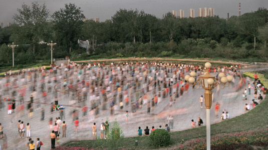 In the early evening, people gather in the square, ready for a new round of square dancing. Creator/Source: Hongqiao District Cyberspace Administration